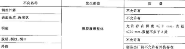 8.11成品以20000条为一批,每批抽取1条进行外观质量、尺寸的检查;在检测合格的橡胶履带上分别取足够试样进行橡胶物理性能、履带单根钢丝帘线(绳)的拉力、芯金强力的检测;在该批产品生产过程中制备试样进行芯金与橡胶的粘合强度、钢丝帘线(绳)与橡胶的粘合强度的测定。
