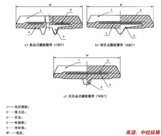 CRT代表轮齿式橡胶履带,通常可不标注,等同以上括号内的规格标记;其他类别则必须标注。