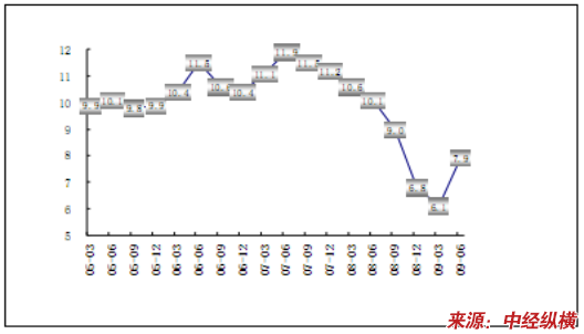 上半年,规模以上工业增加值同比增长7.0%,增速比上年同期回落9.3个百分点。其中,一季度增长5.1%,二季度增长9.1%。在39个大类 行业 中,36个 行业 保持同比增长。高技术制造业增速明显加快,而高载能 行业 生产低位回升,其中包括有色、建材、化工、石油加工业。分轻重工业来看,重工业增长6.6%,轻工业增长8.2%。在全球金融危机的重创之下,重工业增速严重下滑,较轻工业增速发生逆转。然而5月份之后,重工业增速出现较为强劲的反弹势头,从而使得二季度的增速较一季度有了明显的提升。