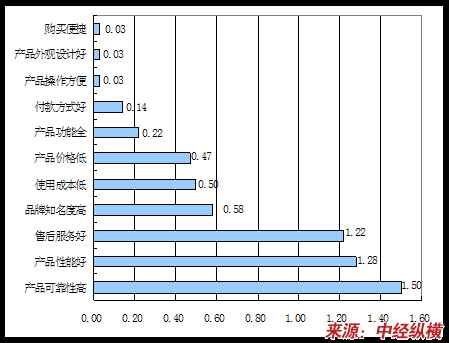 目前用户在选购产品时,最看中的是产品可靠性、产品性能和售后服务等3项直接影响使用效果和效率的关键因素,他们的加权平均值分别达到1.05、1.28、1.22;用户关注的是能满足这些要求的品牌,较知名的品牌一般在满足这些需求方面比较有保障;其次用户关心的是设备的使用成本和产品价格。用户在购买设备时已发生了由'点'到'线'的转变,即关注点不再仅仅停留在一次性购买成本上,而是普遍关注设备在使用过程中所需持续支出的油耗、维修、配件等相关成本,即“综合”成本。