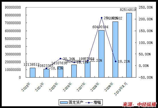 2003-2010年1-8月生物、生化制品制造 行业 固定资产发展状况