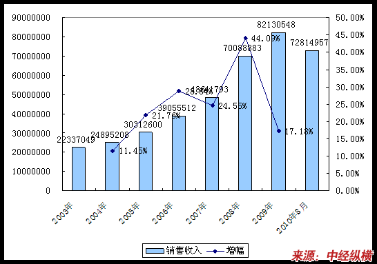 2003-2010年1-8月生物、生化制品制造 行业 销售收入发展状况