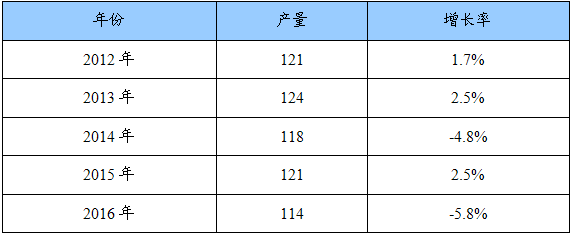 2012-2016年化学品氧化铝产量增长预测