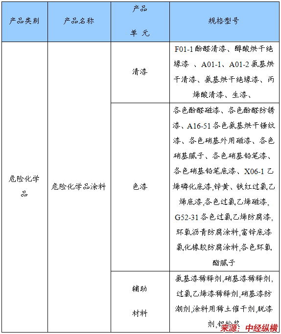 开展无证查处的涂料类产品明细