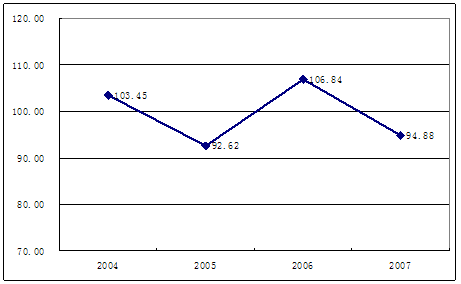 2004年-2007年国产汽车销售价格指数变化趋势