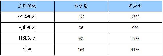 医用高分子夹板上游主要原材料聚氨酯应用领域需求量统计表