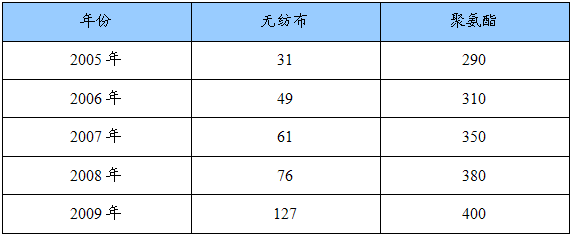 医用高分子夹板上游主要原材料无纺布产量增长统计表