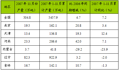2008年,将新增氮肥生产能力200万吨,磷肥生产能力180万吨,全年化肥总产量将比2007年增长10%左右。尿素和磷酸二铵产量将分别超过国内需求500万吨和150万吨左右。