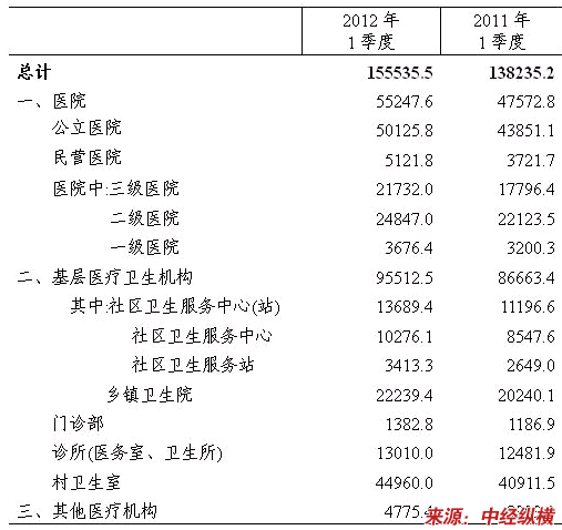 2012年1季度医疗卫生机构诊疗人次数(万人次)