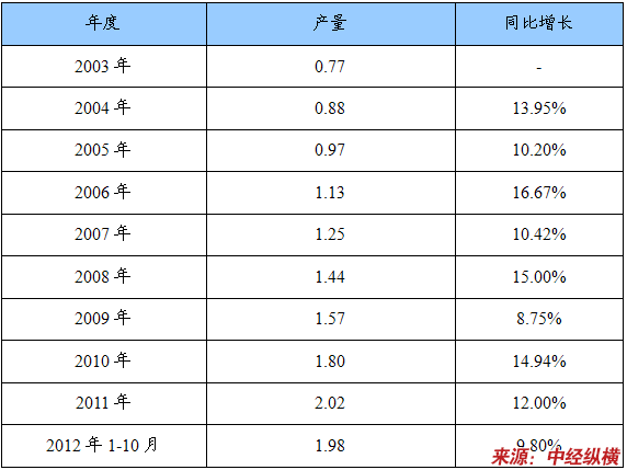 2003-2012年10月水性无机富锌防腐涂料产量增长情况
