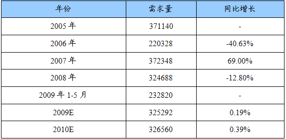 2005—2010年我国重型载货汽车(含底盘)中/后桥制动鼓需求 分析 及预测表