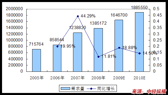 由于受到经济危机的影响,2008年我国重型载货汽车整车销售有所下滑,重型载货汽车中/后桥制动鼓的需求也会出现下滑,不过从重型载货汽车整个 行业 (含底盘)的发展来看,重型载货汽车中/后桥制动鼓需求保持增长,预计到2010年将达到18.8万多个,加上重型载货车的维修过程中还会有大量需求,未来的市场需求巨大。