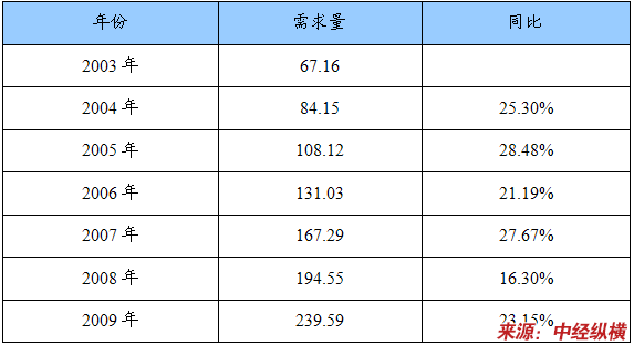 1978—2006年,中国能源消费量由5.7亿吨标准煤增加到24.6亿吨标准煤,增长了4.3倍。有资料表明,最近几年中国经济对石油需求的年增长速度约为16%(世界年均增长速度为6%—7%),近年来,中国也开始加大石油储备力度,但提高储备量尚需时日。中国石油工业十五 规划 制定了“立足国内、开拓国际、加强勘探、合理开发、厉行节约、建立储备”的方针,首次提出逐步建立和完善国家战略石油储备体系,以提高应对突发事件的能力,保障国家石油供应的安全性。2008年以来我国加快了油气勘探开采的力度,其中仅新疆石油预测资源量达209.22亿吨,累计探明石油地质储量达27亿吨。根据预测,我国未来油气井的开采速度将会同比每年增长6%-8%左右,同时我国周边地区如俄罗斯及哈苏克斯坦等地区的油气开采量也会大幅度提速,这些利好因素都为我国的油井水泥大幅增长提供有力的支撑。因此预计我国2010年-2013年的油井水泥供应量及需求量都将保持在年增长10%-13%左右,2013年后市场饱和度有所减缓,但增长量还应高于油气井的开采增长率,达到8%左右。