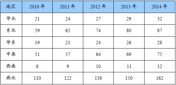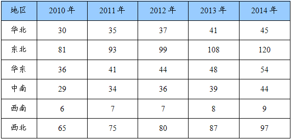 2010-2014年我国分区域油井水泥供应能力 分析 预测