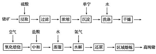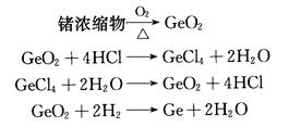 含锗的铅锌矿采用硫酸浸出,过滤,浓缩,得到的酸浸取液经单宁沉淀、洗涤、烘干得锗浓缩物。锗浓缩物经氧化焙烧转变为二氧化锗,二氧化锗用盐酸中和得四氯化锗,水解后再用氢气还原得锗。最后用区域熔炼,得高纯锗。