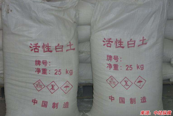 活性白土是用粘土(主要是膨润土)为原料,经无机酸化或盐或其他方法处理,再经水漂洗、干燥制成的吸附剂,外观为乳白色粉末,无臭,无味,无毒,吸附性能很强,能吸附有色物质、有机物质。在空气中易吸潮,放置过久会降低吸附性能。使用时宜加热(以80—100度为宜)复活,但是,加热至300摄氏度以上便开始失去结晶水,使结构发生变化,影响褪色效果。活性白土不溶于水、有机溶剂和各种油类中,几乎完全溶于热烧碱和盐酸中,相对密度2.3~2.5,在水及油中膨润极小。我国活性白土