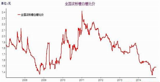 应该指出,凡是淀粉糖,特别是果葡糖消费较高的国家,其单价均低于蔗糖。如美国精炼砂糖每公斤49美分,而55-果葡糖浆(干物质计)为35美分,结晶葡萄糖为35美分;日本砂糖每公斤185日元,而果葡糖浆为80日元,结晶葡萄糖为120日元。因此食糖消费的品种结构,除了天时地理和政策因素,很大程度上是淀粉糖的价格,决定了其市场占有的份额。所以我国近年淀粉糖价格以干物质计每吨为2300-2500元,而蔗糖为每吨2900-3100元的情况下,淀粉糖获得了较快发展速度,但果葡糖浆却因成本过高,和蔗糖比,缺乏竞争力,因而至今年产只有几万吨。
