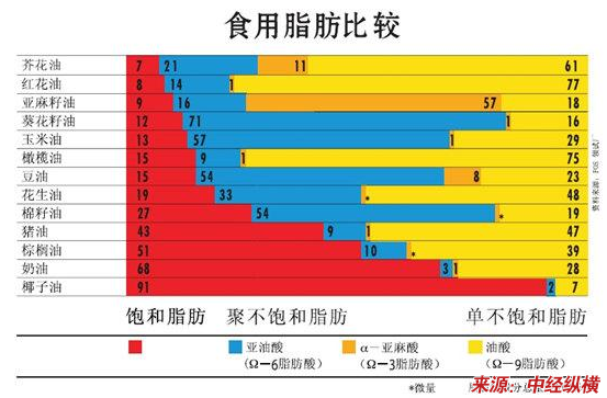 5.营养价值,富含大量的不饱和脂肪酸以及一定的亚麻油酸和次亚麻油酸,对于人体的新陈代谢是有益的;而且对于防止心血管疾病有一定的作用,但不是决定性的。