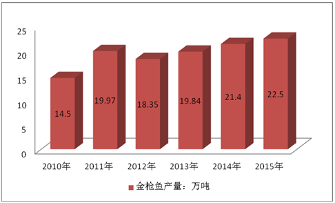2014年全球金枪鱼(包括长鳍金枪鱼,大眼金枪鱼,鲣鱼和黄鳍金枪鱼)总产量为477.9万吨,比2013年同期产量增加22.1万吨,提高4.82%。2016年全球金枪鱼产量达到521万吨,在巨大需求的带动下,全球产量逐年稳定增长。