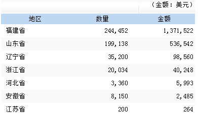第四节 中国主要省市牡蛎(蚝)出口情况