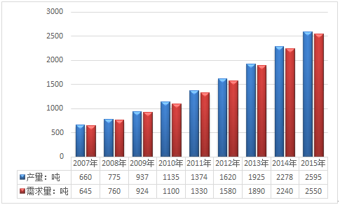 2006年我国国内纳豆产量为660吨,到2015年国内纳豆产量增长至2595吨,近年来纳豆产品产量年均增度接近18.7%。2015年我国纳豆产品需求量为2550吨,消费同比制造13.8%。