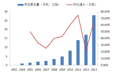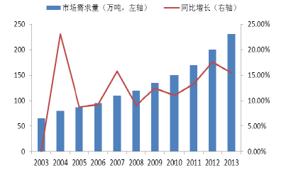 中国地区苏氨酸产能快速增长,来自中国的产量大量出口,对全球其他地区市场占有率也不断提高。2013年梅花生物扩产明显,希杰也关闭了印尼工厂,转向国内生产,境外需求较为稳定,因此国内出口呈现爆发式增长的趋势。按照博亚和讯统计,2013年出口同比增长80.31%。