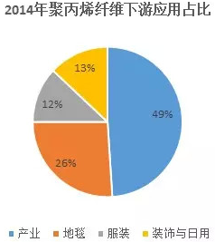 从上图我们可以看到,产业用纤维料占比49%,位居第一位,聚丙烯纤维在服装与日用方面在目前来说,还处于萌芽阶段,未来发展潜力巨大,是有意创业者的不错选择。