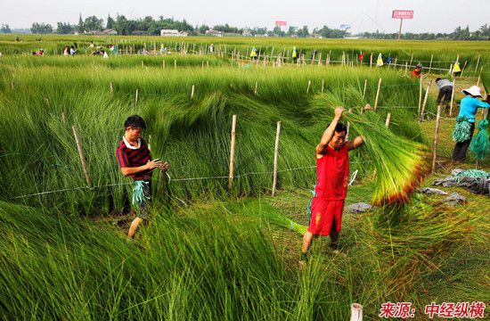 蔺草,俗称石草、席草,草茎圆滑细长,粗细均匀,壁薄芯疏,软硬适度,纤维长,富有弹性,抗拉性好,色泽鲜艳,清香浓郁。是极佳的天然绿色植物纤维之一。(可行性 研究 报告)