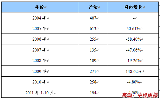 2004-2011年10月中国激光照排机产量及同比增长 单位:台