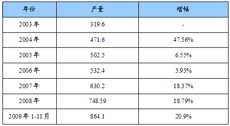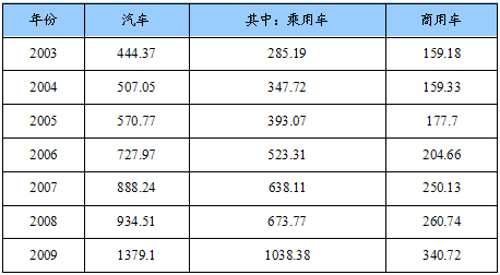 (1)汽车产销实现稳定增长。2009年汽车产销量力争超过1000万辆,三年平均增长率达到10%。