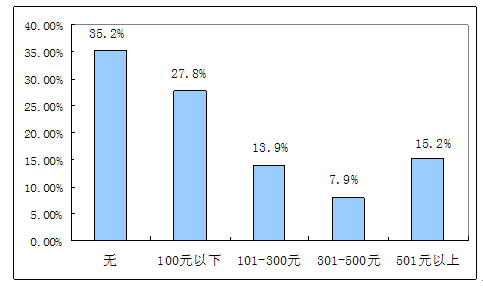 在软件方面,掌机/游戏机市场中同样存在着相当大规模的无消费人群,这部分人群占掌机/游戏机玩家的35.2%。而单款游戏消费在百元以下的玩家同样存在着较大的购买盗版游戏的可能,这部分玩家所占的比例为27.8%。