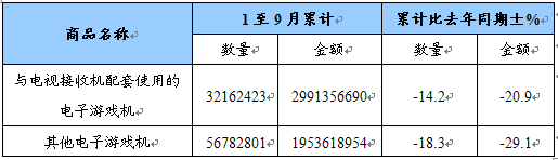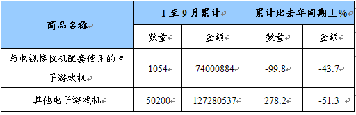 2010年9月中国游戏机出口数量及金额统计 单位:台;美元