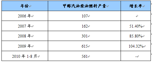 一、中国甲醇柴油汽油项目市场供给总量 分析