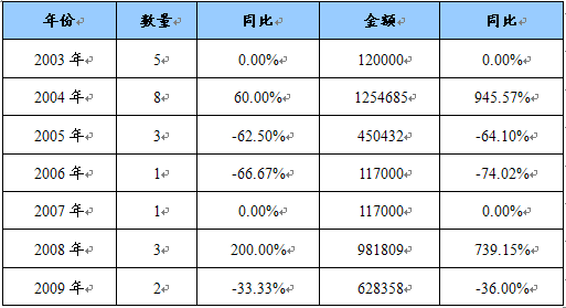 2003-2009年我国举高云梯消防车潜在需求量及同比增长统计表 单位:辆