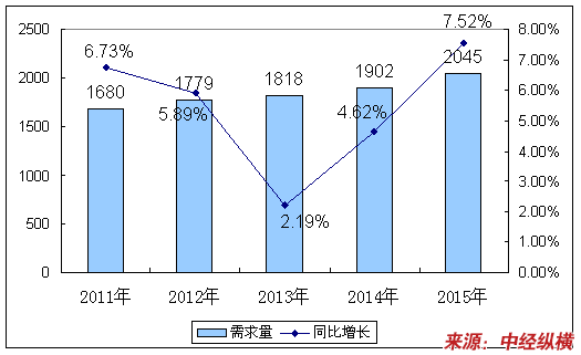 2011-2015年中国钢筋混凝土轨枕需求量预测图
