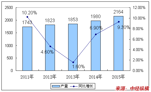 2011-2015年中国钢筋混凝土轨枕产量预测图