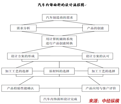 汽车座椅面料生产企业的技术特点和水平主要体现在面料设计与开发、原材料以及加工工艺的选择等方面。汽车座椅面料的设计与生产是一个涉及多领域的综合过程。其设计一般是从汽车制造商的要求开始,汽车制造商明确说明所需汽面料的应用车型、等级、销售对象和特殊要求,设计师根据以上要求提出产品思路的创意,并通过计算机辅助系统对产品创意进行设计,将其转化成设计方案。设计方案形成之后,要进行方案的科学论证,并取得制造商的认可。方案确定后,就要对面料所使用的原料、加工工艺进行选择,然后进行产品开发和小批量生产。产品生产出来后要进行检验,检验合格后还需客户认可。