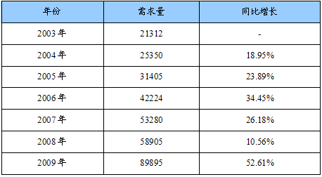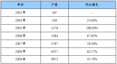 近年来,我国汽车工业发展迅速。汽车产量从2007年的889万辆到2009年的1393万辆,尤其是2009年汽车产量比上年增长了47.91%。预计到2010年,我国汽车产量将超过1500万辆,以汽车产量推动我国汽车线束产业发展的因素仍然存在。