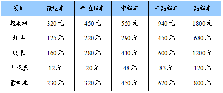 了解用户对汽车电器的消费水平,有利于厂家制定合理的营销策略。根据此次调查结果,下表列出了不同级别车用户消费各种汽车电器产品的平均价格,供汽车电器企业和经销商参考。