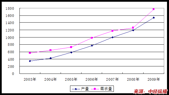 2003-2009年我国汽车中央电器控制盒供需平衡对比图