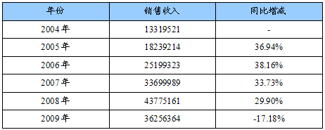 2004-2008年我国切削工具销售快速增长,年均增长超过34%,但由于受到经济危机的影响,2009年出现下滑,比上年同期减少17.18%,但随着经济的回暖,切削工具产销均回暖。