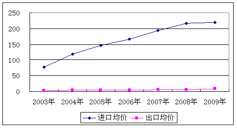上图是我国近几年进出口切削工具的平均价格,从进出口价格比较看,进口价格远远高于出口价格,这跟我国技术相对落后有关,价格整体呈现平稳上涨态势。