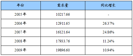 2005-2009年国内市场巯基丙酸需求量统计