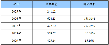 2005-2009年巯基丙酸出口数量统计