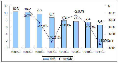 2004-2010年非制冷红外探测器产品价格变化趋势 单位:万元/套