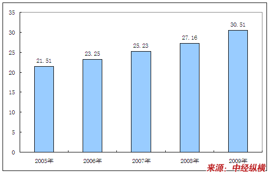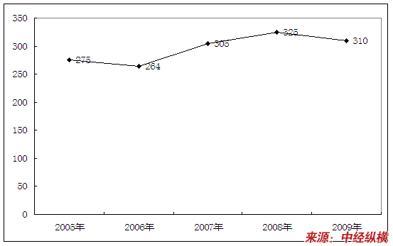 2005-2009年原中央财政煤炭企业商品煤均价走势图