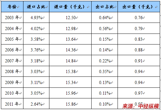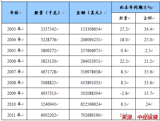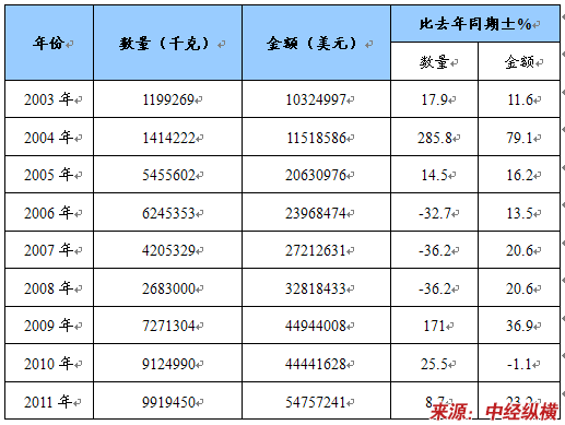 2003-2011年卡尔费休试剂进出口数量估算