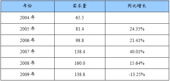 四、2004-2009年塑料购物袋产品产量情况 分析