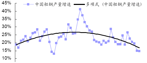 2003-2007年国内粗钢产量增速情况