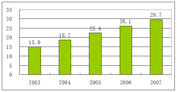 根据2010年之前的 规划 ,中国化学建筑材料的发展将推动塑料管材的使用,特别是PVC和PE产品。到2010年前,新建、再建和扩建工程中塑料管材的使用将达到80%;城市污水管道系统的塑料管材使用率将达到30%;建筑水供应、热水供应和供热管道系统的塑料管材使用率将达到80%,城市水供应系统中低于DN400mm的塑料管材使用率是70%,郊区水供应系统的塑料管材使用率也是70%;城市煤气管道(中低压管道)的塑料管材使用率是60%,建筑中电线保护管道种的塑料管材使用率将高达90%。
